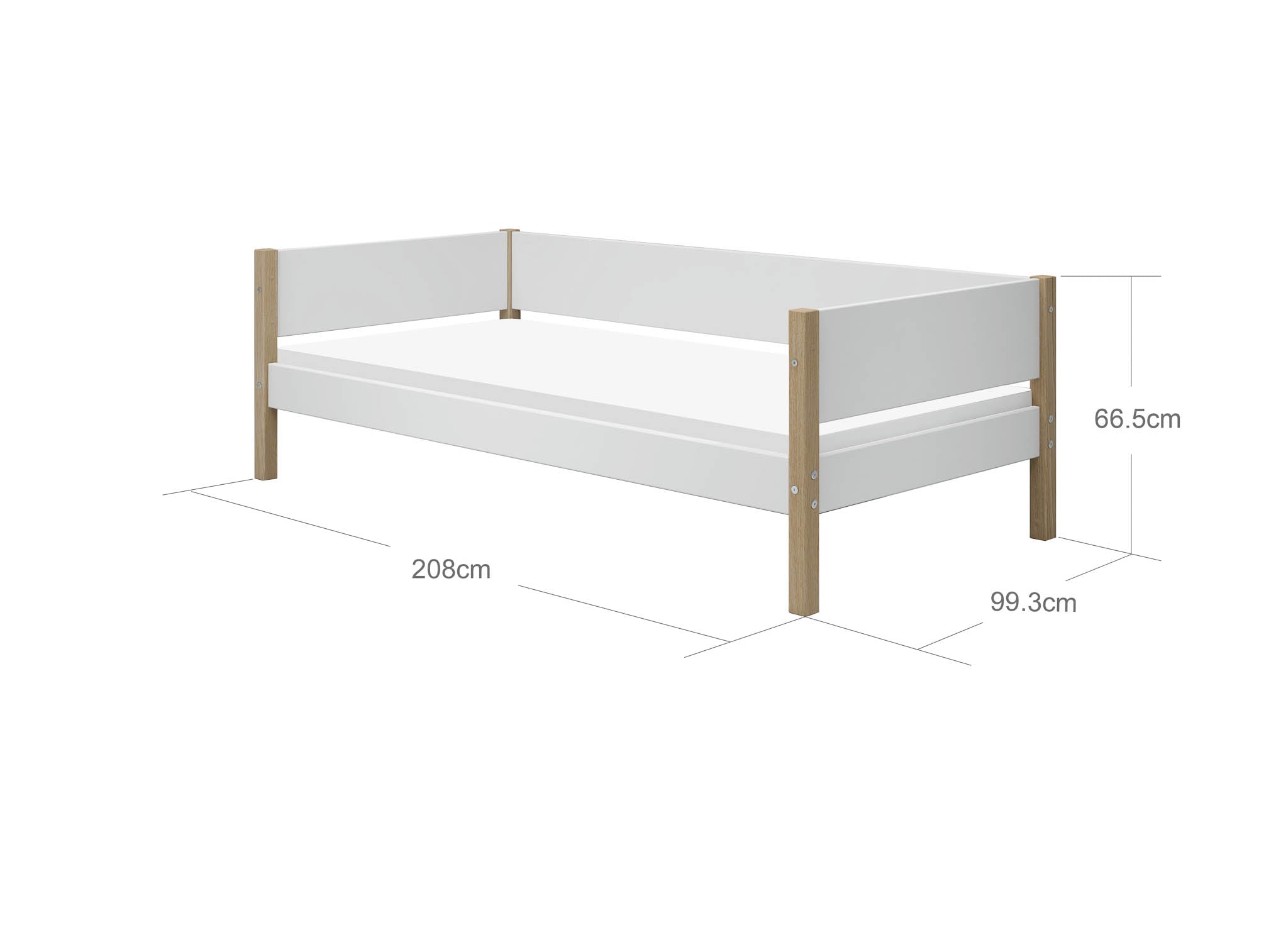Nor daybed with head- and footboard and back rail. The bed is made of FSCTM certified MDF and solid oak.
