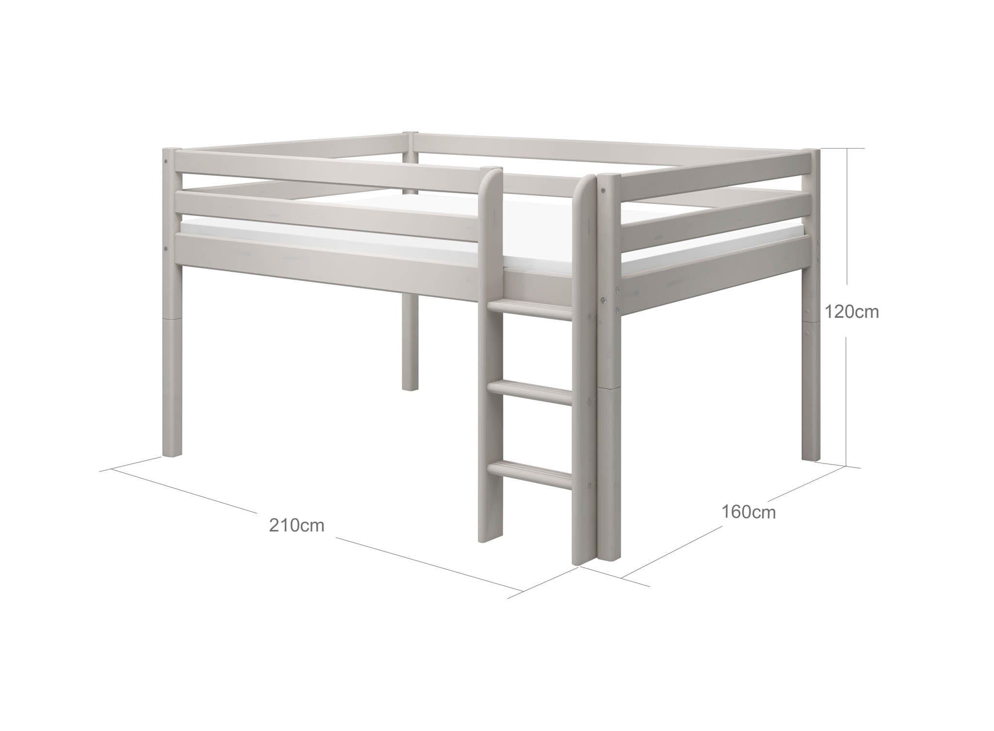 CLASSIC mid-high bed with a width at 140 cm. The bed has straight ladder with anti-slip steps. Use the space underneath the bed to storage or create a playful and cozy space for your child.