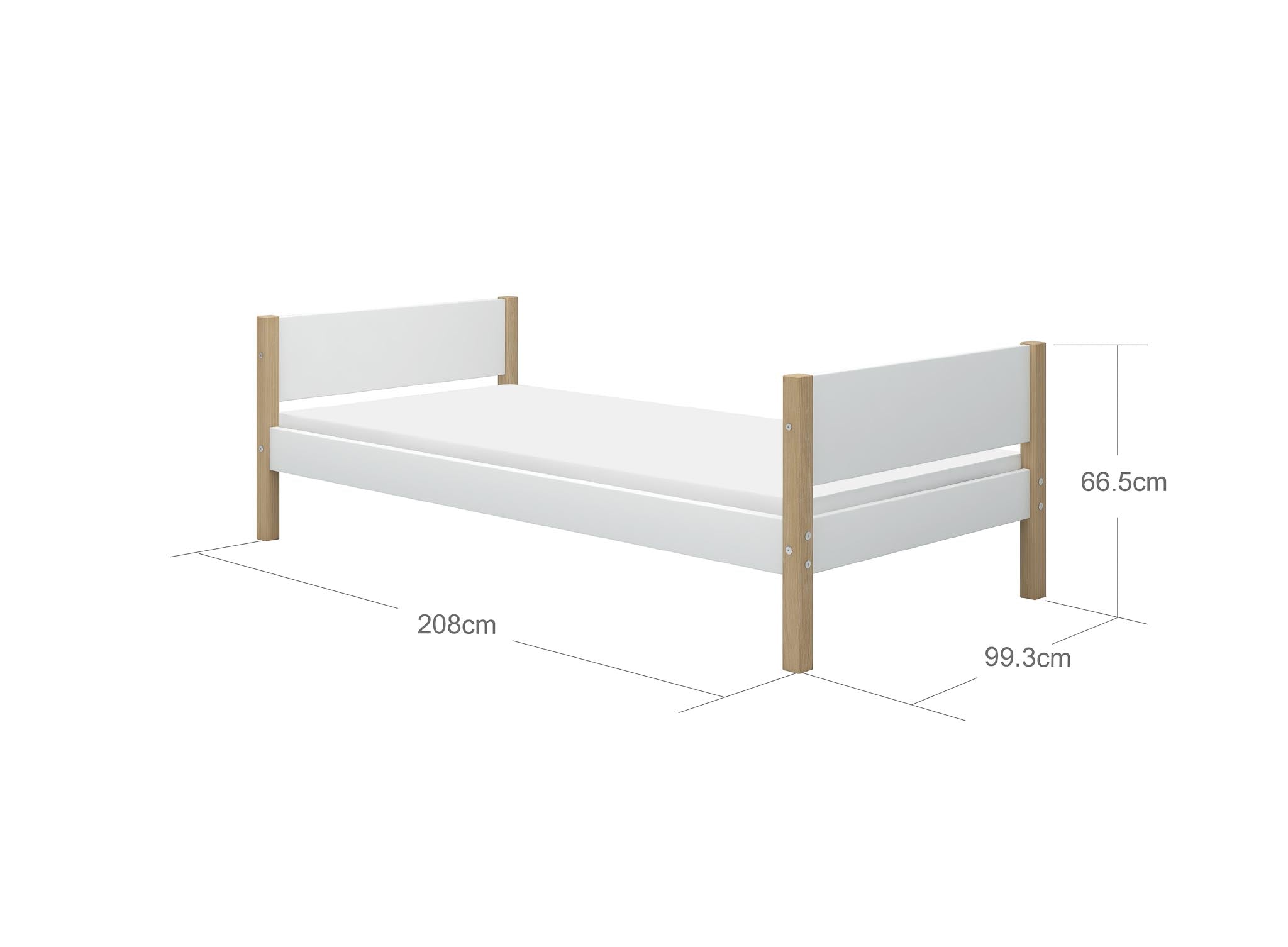 Single bed with legs in solid oak. Made of MDF and solid oak.