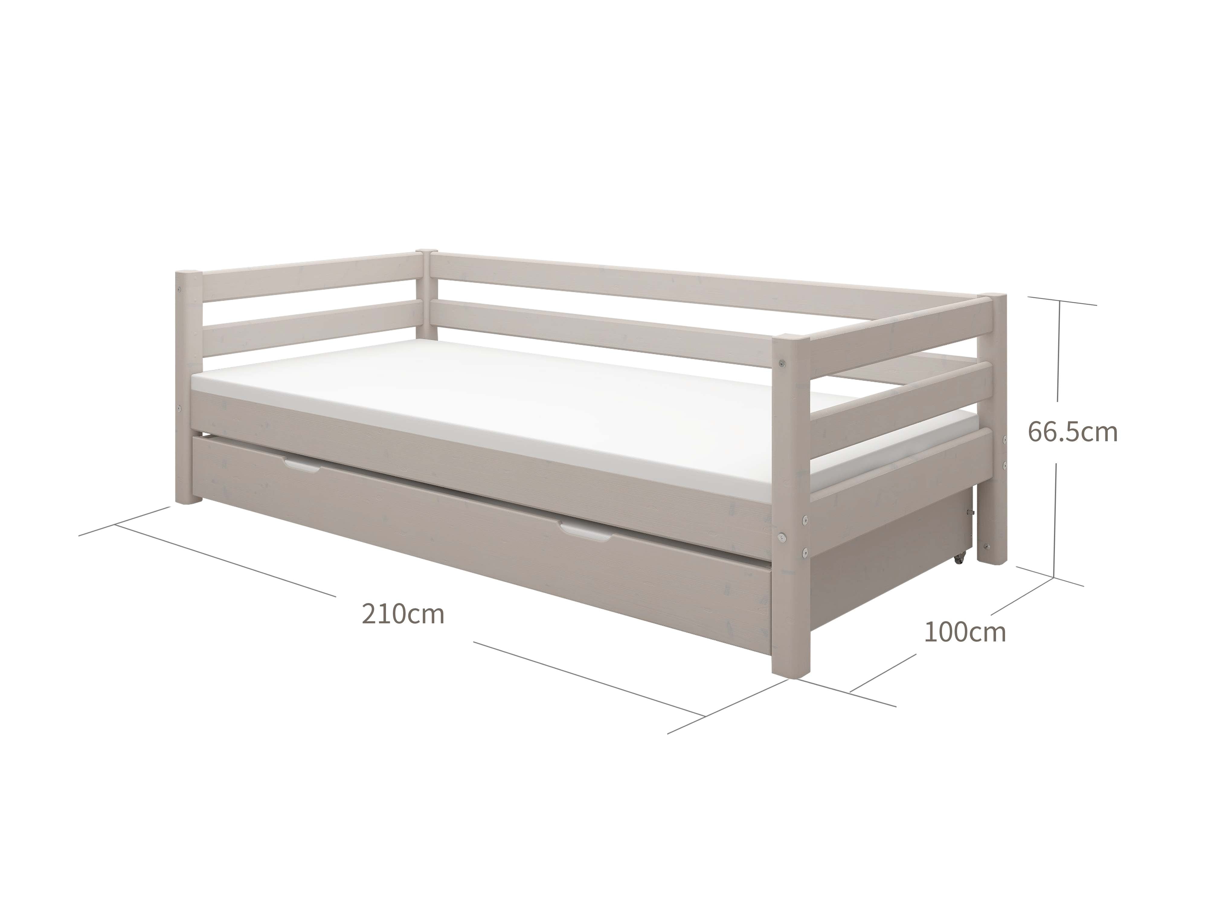 CLASSIC bed with backrest, head- and foot board and pull-out bed undrneath the bed. The bed is perfect for the teens and for sleepovers with friends or family. The bed has a classic and Scandinavian design and is available in three colours.