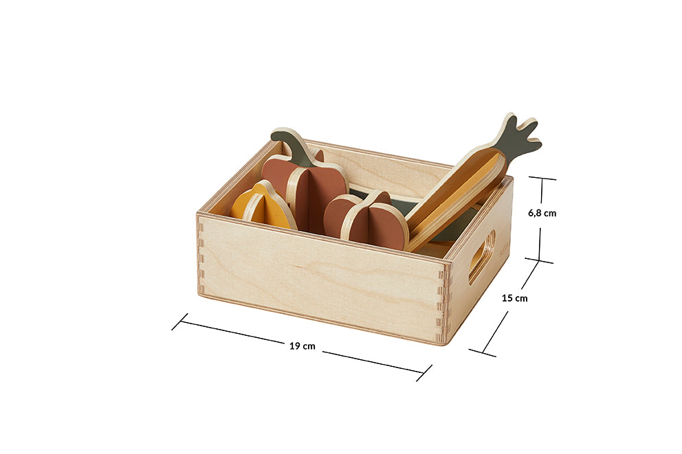 Let these colourful, wooden vegetables become part of your child’s make-believe play. This way, your child can familiarise itself with bell pepper, cucumber, lemon, tomato, and carrot in a playful manner – perhaps making your child curious to taste the real thing for dinner.